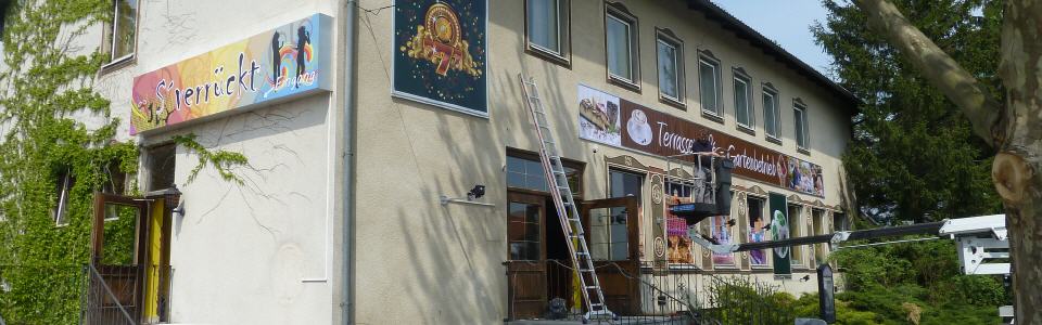 Leuchtreklame, Leuchtschild, Steckschild, Spanntuchkasten.