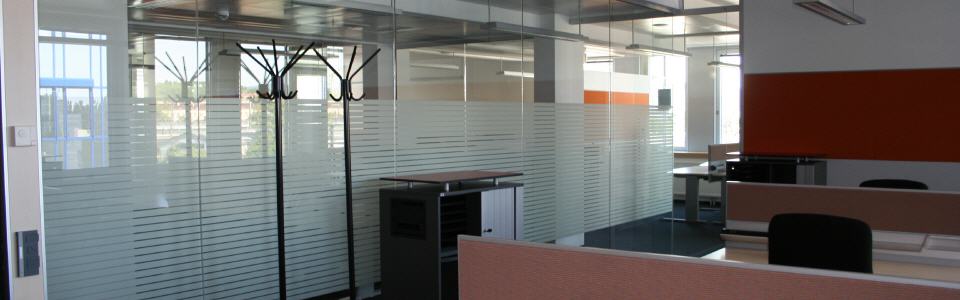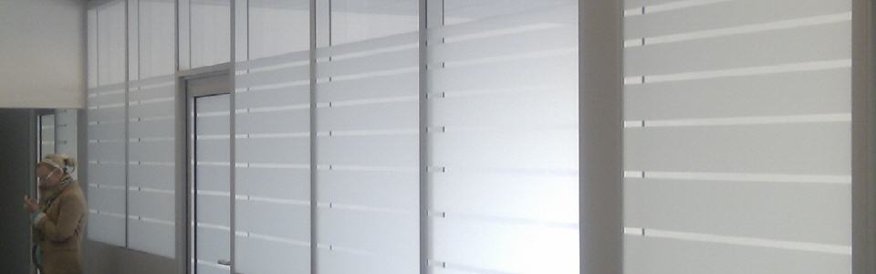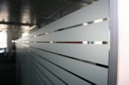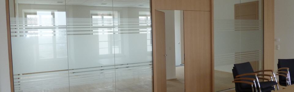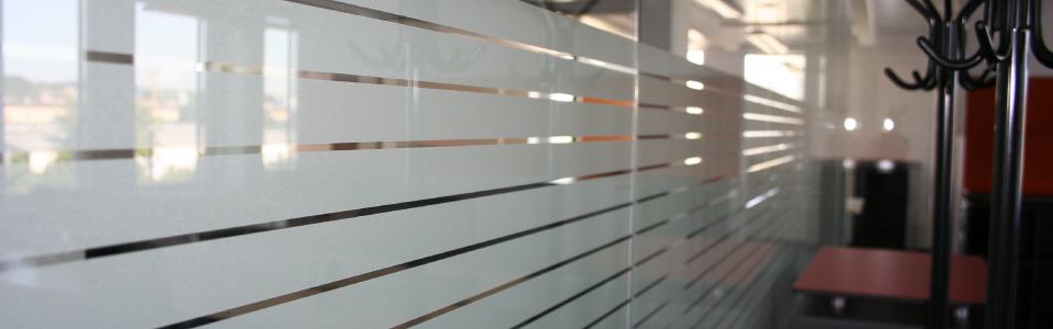 Großflächige Glaselemente sind aus der modernen Architektur nicht mehr wegzudenken. In der praktischen Anwendung zeigen sich oft Gegebenheiten, wie Gegenlauf- oder Sichtschutz, die eine Reduktion der Transparenz erfordern. Milchglas- oder Satinatofolie kann hier vollflächig, in beliebigem Muster oder sogar bedruckt eingesetzt werden. Die einstrahlende Lichtmenge wird kaum reduziert. Die beklebten Flächen können mit den gewohnten Reinigungsmitteln gesäubert werden. Gegenüber geätztem oder sandgestrahltem Glas bietet die Folie bei gleichem Effekt den Vorteil, wieder entfernbar zu sein. Speziell bei Mietobjekten ist das häufig eine interessante Option.