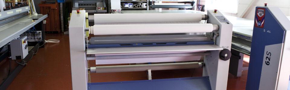 Drucke für den langfristigen Außeneinsatz, zb. Leuchtkästen, Werbebanden, Verkehrsschilder, Leitsysteme,... werden vor ihrer Weiterverarbeitung glänzend laminiert.